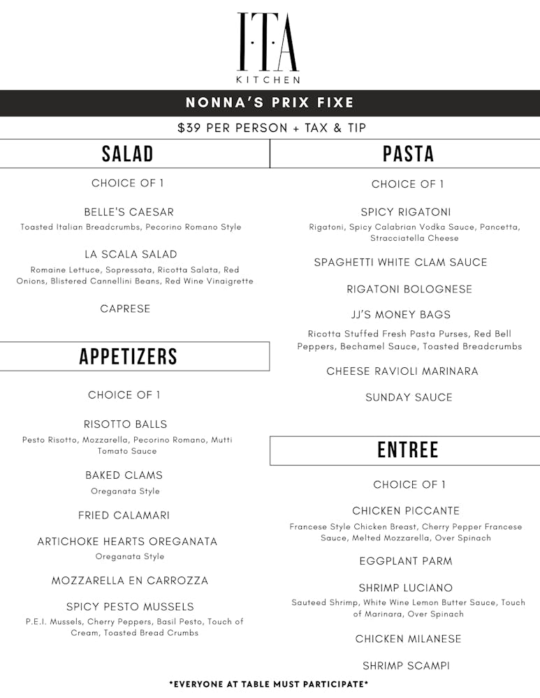 - Nonna's Prix Fixe (Offered Sundays)
